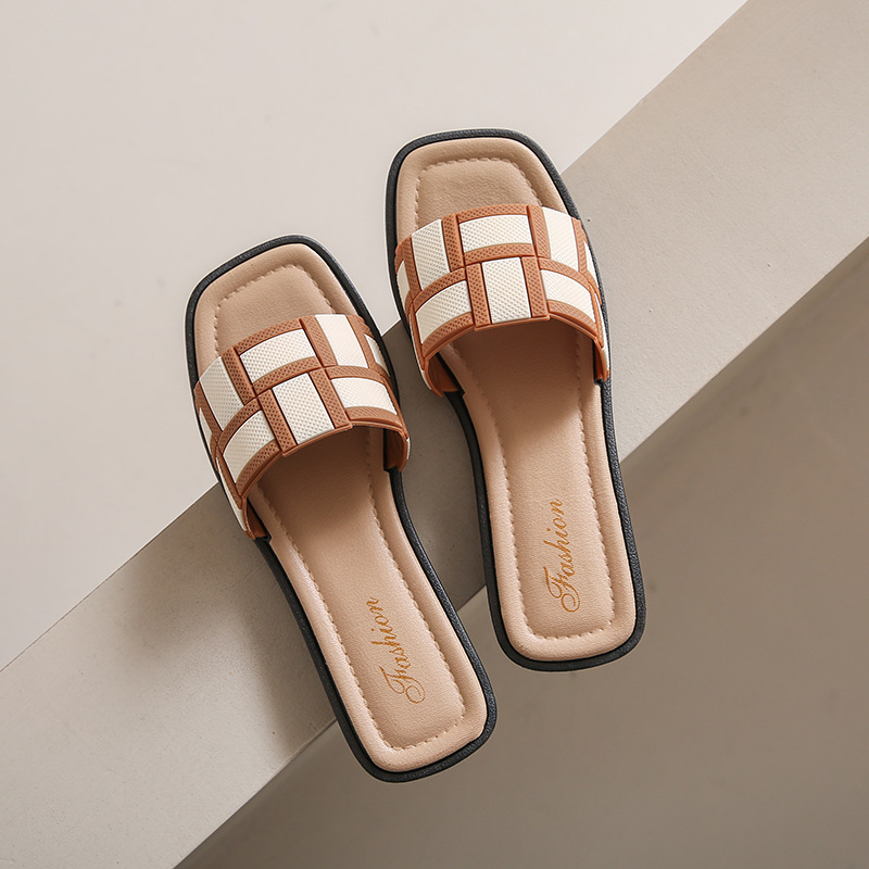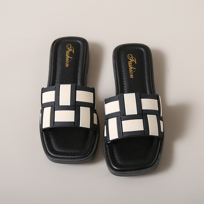 Woven Square-Toe Flat Sandals – Casual Summer Slip-On Slippers for Women